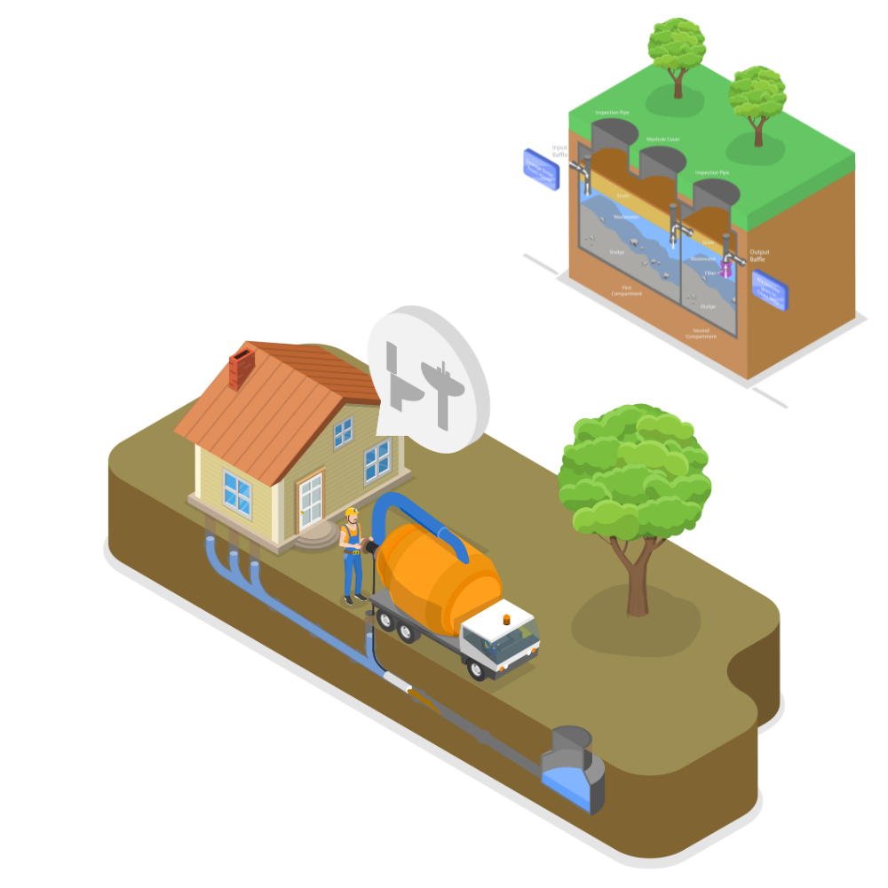 Wywóz nieczystości płynnych z szamb, przydomowych oczyszczalni ścieków i kanalizacji.